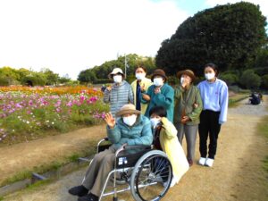 外出支援例 季節の花見(しだれ梅 桜 桃 バラ ラベンダー等)