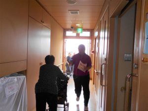 主治医の「認知症と鬱」についての講義や認知症初期支援チームの看護師による講義など勉強になりました。認知症カフェ「チャムール」の皆様も参加され、帰りにやすらぎを訪問。チャムールでお手伝いをしている入居者は 久々の再開に驚き涙して喜ばれました。