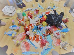 ⇒黒いビニール袋で出来た「くじら」と「かつお」が同時に釣れました」🐡
