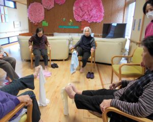 お茶を飲みながら「今日は何かします?」「風船🎈」の声「風船ピンポンにしましょうか❓」結果、普段参加しない方も座られスタート🔫めちゃくちゃ盛り上がってます💛