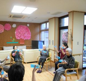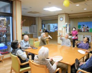 午後の少し空いた時間に「黒ひげ危機一髪」というゲームを楽しみました💛。樽に剣をさし海賊が飛んで行ったら歌を唄います。ドキドキハラハラ🧨 「春よ来い」等の季節の歌や「銀座かんかん娘」等の懐メロを唄い気分転換しています✨