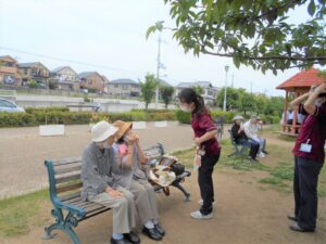 ようやく面会もできるようになりました💛今日は外出支援🚐いつもの散歩コースではなく久米田池の周りを散歩しました🚐遠出の散歩は本当に久しぶりです😊「ありがぁたや ありがたや♬」と 歌う入居者の以前と変わらぬ笑顔に安心しました🥰