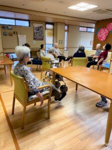 理学療法士が指導している生活機能向上リハビリです💪個々に指導内容が違う入居者も音楽に合わせ遠くから参加♬ いつまでも元気に歩くために頑張っています💖