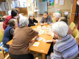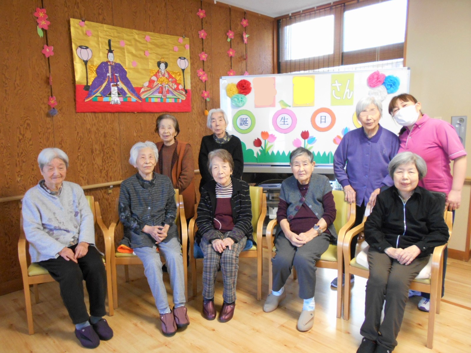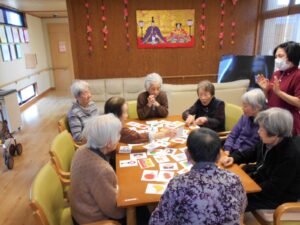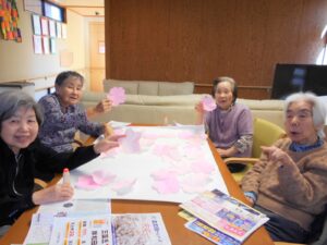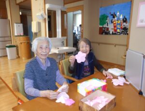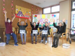 桃の節句「ひなまつり」🎎やすらぎでは古来の貝合わせをモチーフに、〇△□ゲームのお雛様バージョンを作りました。ハサミで切る台紙に貼る等の作業は皆様に手伝って頂き、にぎやかに「ひな祭り」を楽しみました🧡