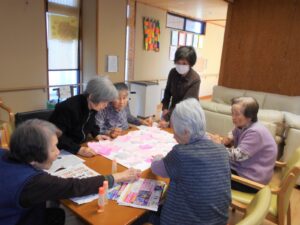 4月生まれの方のお誕生日会に使う壁紙をみんなで作っています😊完成が楽しみです💖