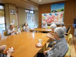 栄養課が準備してくれたケーキでお祝いしました。「おめでとうございます💝」