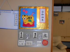 曜日の情報、入浴日や天候などを意識していただく時間です。