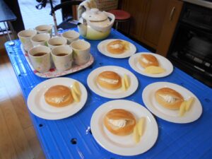 栄養課からパンをもらったので おやつは生クリームをトッピングしました。