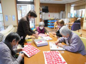 一日中 福笑い 羽根つき けん玉 かるたなどのお正月の遊びをしました。