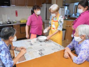 白玉団子の冷やしぜんざいを作るはずでした。入居者様「水入れすぎやで」「どうするん」「団子にでけへん」とお叱りを受けるスタッフ。