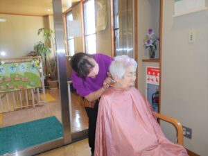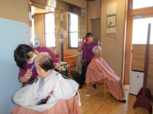 美容室「桜」様に変更になりました。カット後セットしてくださるので入居者様の表情が明るくて素敵です。