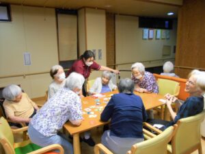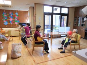 生活機能向上連携リハビリの風景です。集団で出来る方と個人でする方と別れてリハビリを行っています。