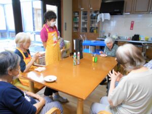 手作りおやつはかき氷にしました。トッピングはスイカです。かき氷機が上手く使えず全員で食べるのは断念しましたが皆様楽しまれました。