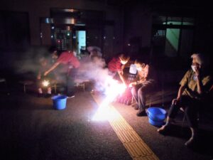 夕立ちで延期が続いていた花火会をようやく開催しました🎇普段言葉を発しない入居者様が「きれいやな」を繰り返しているのも嬉しく、開催できてよかったと思います。少し熱さも和らいだ空に手持ち花火🧨ゆったりと星空を眺めながらアイスクリームを食べました。