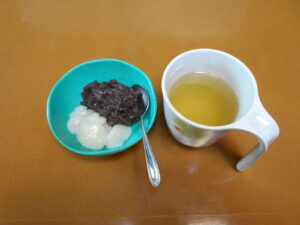 手作りおやつは月見団子ならぬ「白玉団子」作りました。