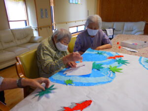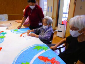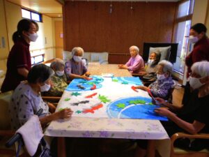 壁面飾り完成。「ええのんできたわし」「ええやんなぁ」と皆様、完成を喜ばれました。