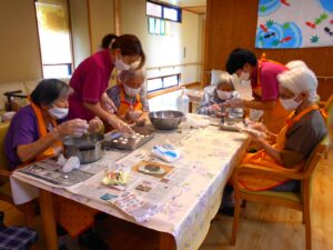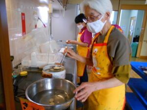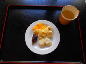 手作りおやつ「白玉フルーツ盛り合わせ」作りました。作ることに興味がない人も美味しく食べていただきました。