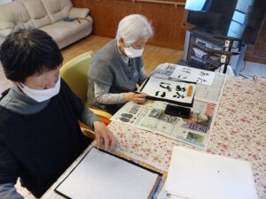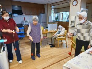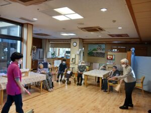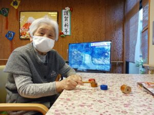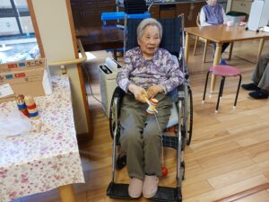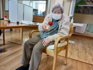 最後に羽子板をしましたが、中々当てられず難しかったです。途中から羽根を手で投げるなどの荒業が出たりしましたが、楽しまれていました。