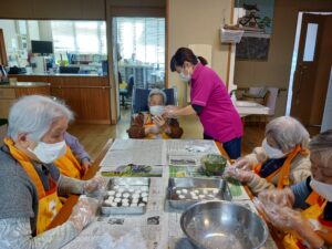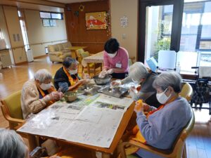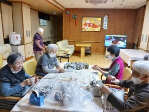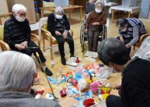 来月の節分ゲームで使う玉を作ってもらいました。色々な大きさ形が出来、作った方の性格が出ていました。
