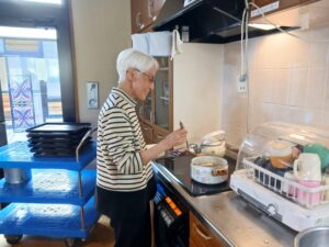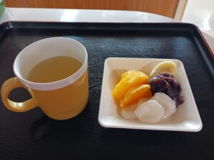白玉団子を作りました。前回はぜんざいにしたので、フルーツ白玉にしました。ちょっと柔らかくて丸めにくいと言われましたが、頑張ってくださいました。