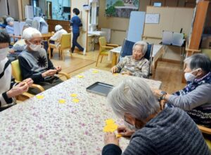 今日はスタッフも参加してハイパーホッケーをしました。ハイパーホッケーは皆さんしっかり参加してくださいます。目標100回で60回続ける事が出来ました。