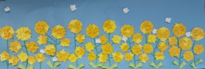 壁面飾り完成しました。春らしく菜の花です。