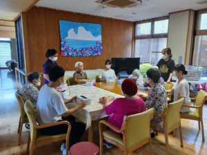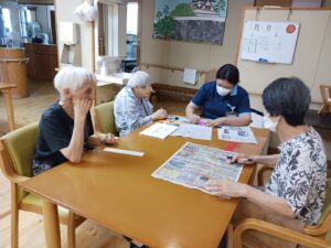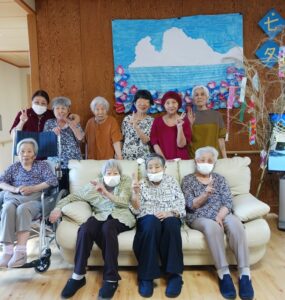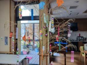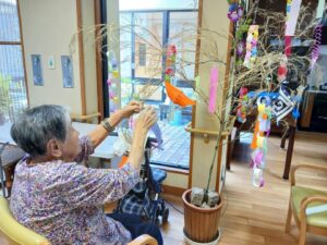 七夕の短冊に願い事を書いてもらいました。皆さん元気に過ごしたいという願い事が多かったです。
