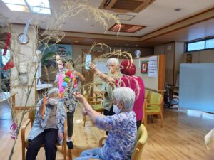 七夕の飾り付けラストスパートです。飾りも皆さんに作ってもらいました。