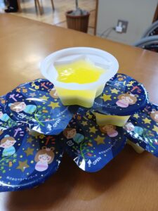 七夕はみんなで願い事の話をしたり、昔の事などを話して過ごしました。おやつは七夕ゼリーです。