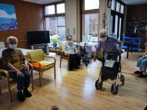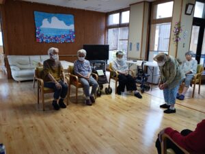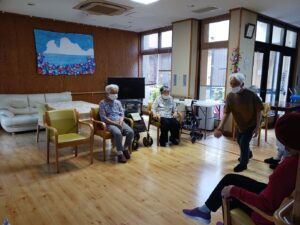 今日は看護学生さんが来てくれたので、一緒にゲームをしました。みんな大好きハイパーホッケーです。