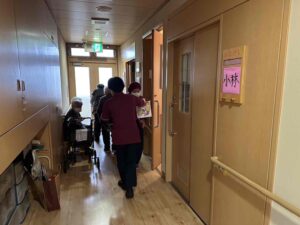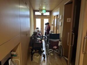 今日はあいにくの雨でしたが、半年に一度の避難訓練を行いました。車椅子が必要な方も増え、避難が難しくなって来ています。一層気を引き締めて訓練を行いました。大きな音に驚かれたり、居室ドアの鍵を閉められたりと色々ありましたが、良い訓練になりました。