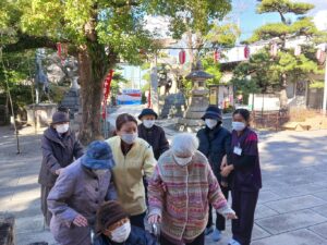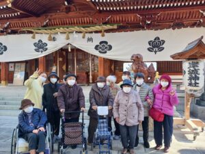今日は全員で岸城神社に初詣に行きました。十日えびすの準備で周りは混んでいましたが、境内には人が少なくゆっくりとお参り出来ました。階段を登れる方に全員分のお賽銭を入れてもらいました。今年も良い年でありますように。