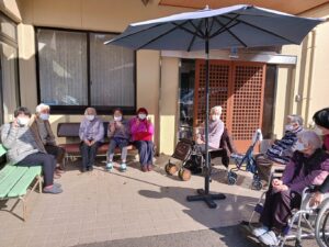 今日は1月とは思えないほど暖かったので、園庭で日向ぼっこと掃除をしてもらいました。風が吹くと少し寒かったですが、日が当たると上着がいらない位でした。