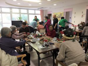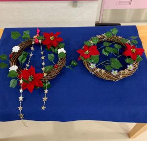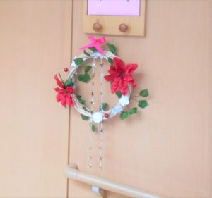 車窓から晩秋の景色を見ながら、グループホーム大阪緑が丘の緑カフェに行ってきました🚐🍁🍂今月は生け花ではなくクリスマスリースを作成しました🎄それぞれが思い思いに作った作品は居室の玄関に彩を添えています🎀