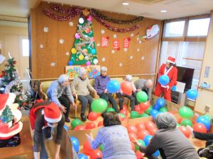 メリークリスマス🎄今日がお誕生日の方がおられたのでクリスマス会を兼ねたお誕生日会を開催しました💝風船陣地取りゲームは大盛り上がり✨ケーキを食べながら「ここではみんなにお祝いしてもらえる」と泣きだす人がいたり「誕生日、今月ちゃうやん」と突っ込みが入ったり大騒ぎ🎉にぎやかで楽しい誕生日会になりました💖